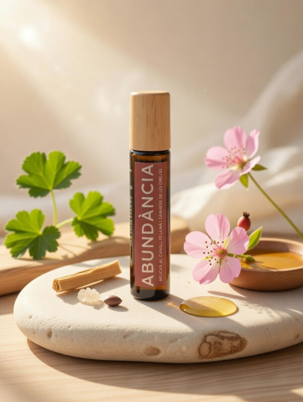 Abundancia es un roll-on de aromaterapia elaborado artesanalmente con aceites esenciales que actúan directamente sobre tus emociones. Su formato de 10 ml te permite llevarlo contigo a todas partes: en el bolso, en el bolsillo, en tu altar… para que la abundancia te acompañe en cada momento.